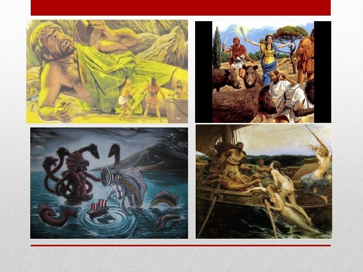 L’ODISSEA: COMPOSIZIONE E ARGOMENTO • È un poema epico in 24 canti (o capitoli) composto da 12. 000 versi • Prende il nome dal suo protagonista Odisseo nome greco di Ulisse • Narra il lungo viaggio di ritorno (10 anni) in patria di Odisseo, eroe greco e autore del cavallo di Troia che ha distrutto la città di Ilio o Troia. Modo di dire: è stata un’odissea, cioè un lungo viaggio