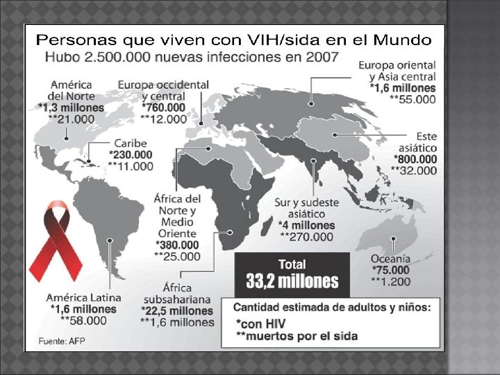 Es uno de los problemas de salud más grave en todo el mundo. Se transmite tanto sexual, como vertical, y a través de hemoderivados. Destruye las defensas y nos hace propenso a todo tipo de enfermedades oportunistas: gripe diarrea, tuberculosis. Los síntomas pueden tardar años en aparecer. mientras tanto somos portadores.