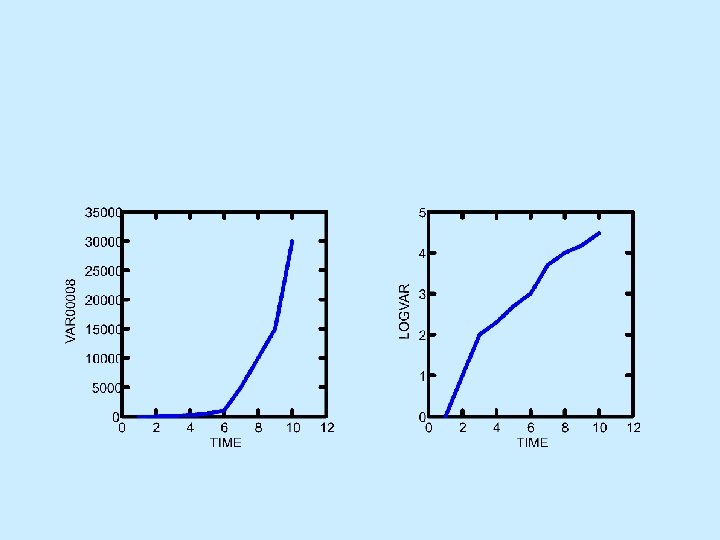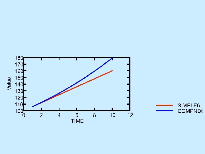 Example of Interest Calculations: $100 invested at 2% and 6% over 10 time periods 1 2 3 4 5 6 7 8 9 10 SIMPLE 102. 000 104. 000 106. 000 108. 000 110. 000 112. 000 114. 000 116. 000 118. 000 120. 000 COMPND 102. 000 104. 040 106. 120 108. 240 110. 410 112. 620 114. 870 117. 170 119. 510 121. 900 TIME 1. 000 2. 000 3. 000 4. 000 5. 000 6. 000 7. 000 8. 000 9. 000 10. 000 LN COMPND 4. 625 4. 645 4. 665 4. 684 4. 704 4. 724 4. 744 4. 764 4. 783 4. 803 LOG COMPND 2. 009 2. 017 2. 026 2. 034 2. 043 2. 052 2. 060 2. 069 2. 077 2. 086 SIMPLE 6 106. 000 112. 000 118. 000 124. 000 130. 000 136. 000 142. 000 148. 000 154. 000 160. 000 COMPND 6 106. 000 112. 360 119. 100 126. 250 133. 820 141. 850 150. 360 159. 380 168. 950 179. 080