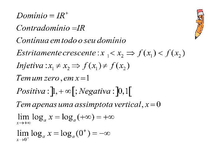 Propriedades gráficas e analíticas da Função Logarítmica, com base maior que 1