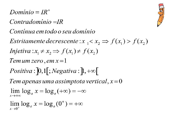 Nota: Podemos sempre passar uma função Logarítmica com base entre 0 e 1, para uma função Logarítmica com base maior do que 1. Basta fazer: