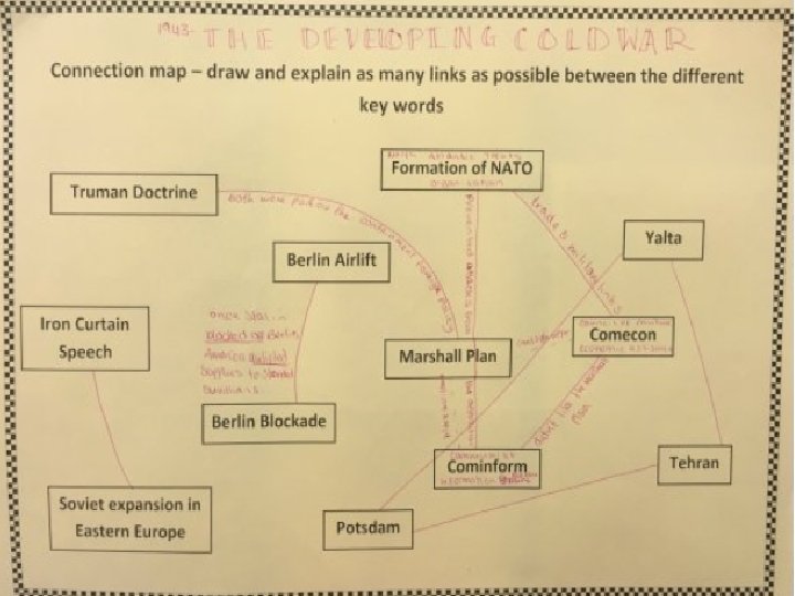 What are they? • Connection Maps are a collection of key words relevant to a topic – these could be people, events, years, policies etc. . • which are written/typed on a sheet of A 4 or A 3 paper and are scattered across the document with spaces between them.