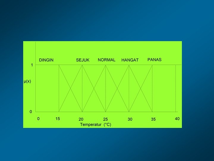Beberapa hal yang perlu diketahui dalam pemahaman sistem fuzzy • Variabel fuzzy – Merupakan variabel yang hendak dibahas dalam suatu sistem fuzzy. Mis: umur, temperatur, permintaan dsb • Himpunan fuzzy – Merupakan suatu grup yang mewakili suatu kondisi atau keadaan tertentu dalam suatu variabel fuzzy • Contoh: – Variabel umur terbagi menjadi 3 himpunan fuzzy: MUDA, PAROBAYA, TUA – Variabel temperatur terbagi menjadi 5 himpunan fuzzy: DINGIN, SEJUK, NORMAL, HANGAT dan PANAS.