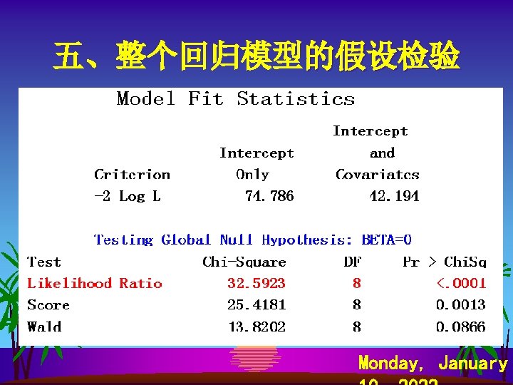 The LOGISTIC Procedure Analysis of Maximum Likelihood Estimates Monday, January