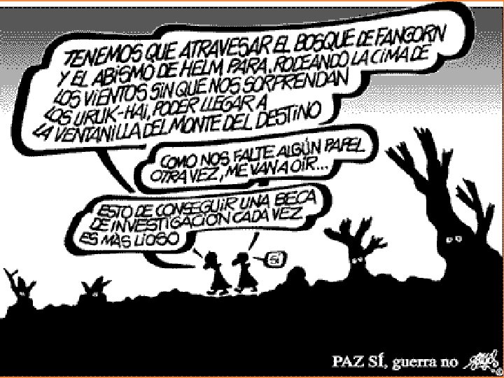 Ventajas y Desventajas de elegir hacer la tesis ØVentajas • Realizar un trabajo creativo • Originalidad • Generar conocimientos ØInconvenientes Las políticas de recursos humanos se han financiado mediante becas sin derechos hasta hace 1 año (especialmente al principio de la carrera). Los Investigadores en fase inicial son considerados trabajadores de hecho pero no de derecho • No existe coordinación entre las distintas etapas de la carrera investigadora. • Las malas condiciones laborales y las escasas expectativas profesionales (40 años edad media para estabilizar puesto) provocan la ¡¡FUGA DE CEREBROS!!