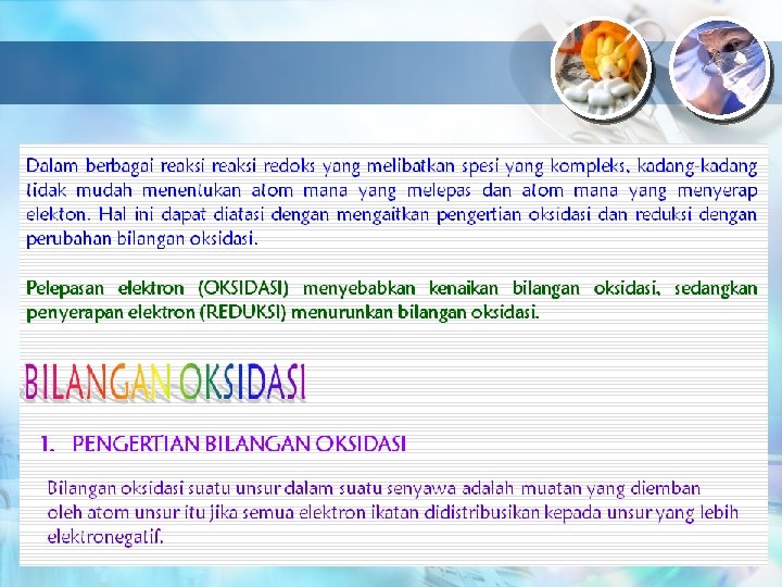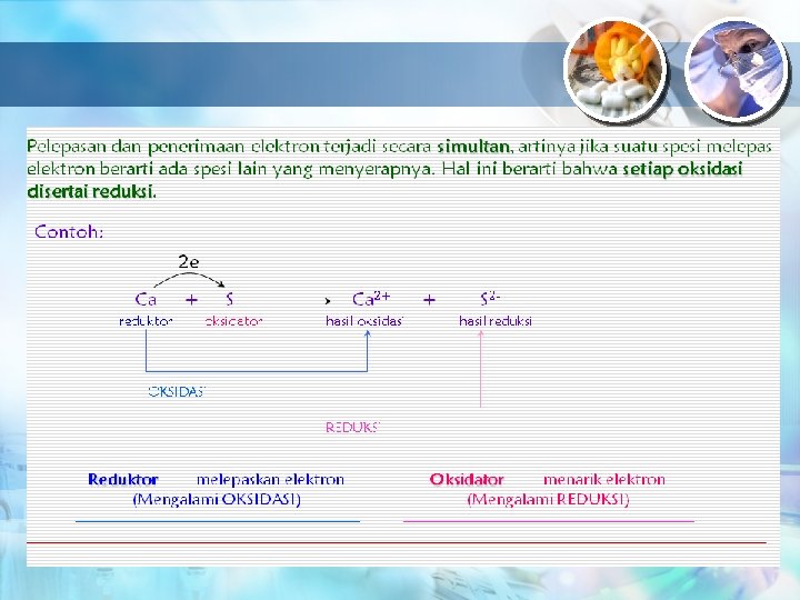 Konsep Redoks 1 Pengikatan dan pelepasan Oksigen 2 Pengikatan dan Pelepasan Elektron 3 4 Perubahan bilangan Oksidasi