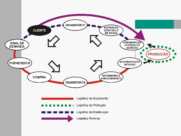 Possíveis atividades em uma cadeia de suprimentos imediatos da empresa. . . Logística empresarial Suprimento físico Distribuição física (administração de materiais) Fontes de Suprimentos Plantas / Operações Clientes