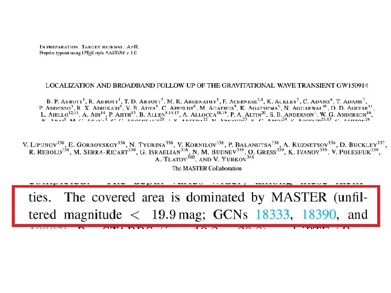 LOMONOSOV MOSCOW STATE UNIVERSITY SAI MSU, Space Monitoring Laboratory, Extreme Universe Laboratory Поиск электромагнитных транзиентов LIGO GW 150914 телескопами Глобальной сети МАСТЕР В. М. Липунов и команда МАСТЕР V. Lipunov, St. Pb. , 09. 22. 14, GRB 2014