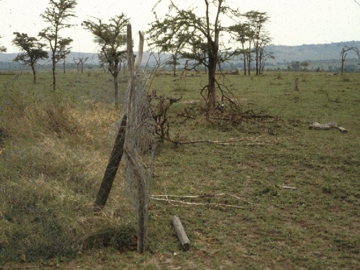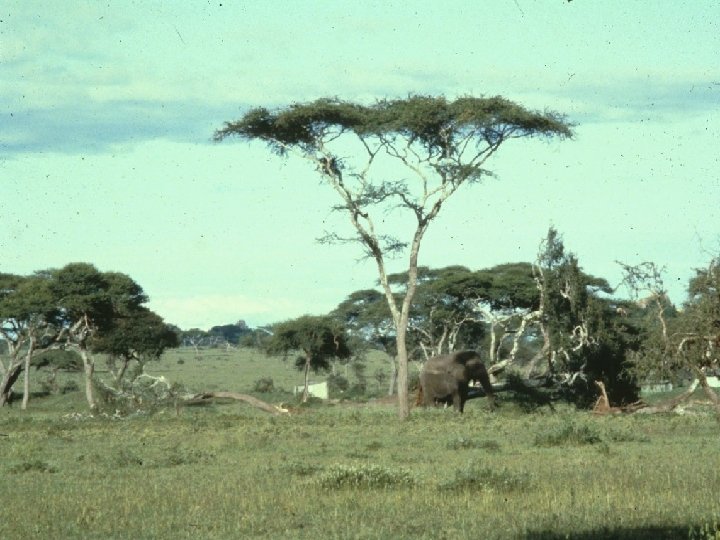 Trees and elephant predation 1960 s – the decline of mature Acacia trees throughout savanna Africa. Elephants are blamed. Elephant culling in Uganda, Kenya, Zimbabwe and South Africa. Not in Tanzania. 1970 s – evidence that excessive human caused fires reduce tree recruitment and tree populations collapse from senescence and not from elephant predation 1980 s – experimental evidence that elephants can prevent regeneration and maintain a grassland state