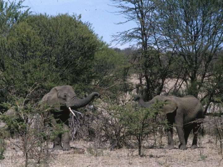 Trees and elephant predation 1960 s – blamed for the decline of mature Acacia trees throughout savanna Africa. - Elephant culling