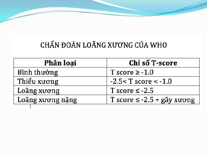 CHỈ ĐỊNH ĐIỀU TRỊ BẰNG THUỐC �T – score ≤ - 2. 5 �T – score từ -1. 0 đến > -2. 5 + nguy cơ gãy xương theo mô hình FRAX hoặc mô hình GARVAN.