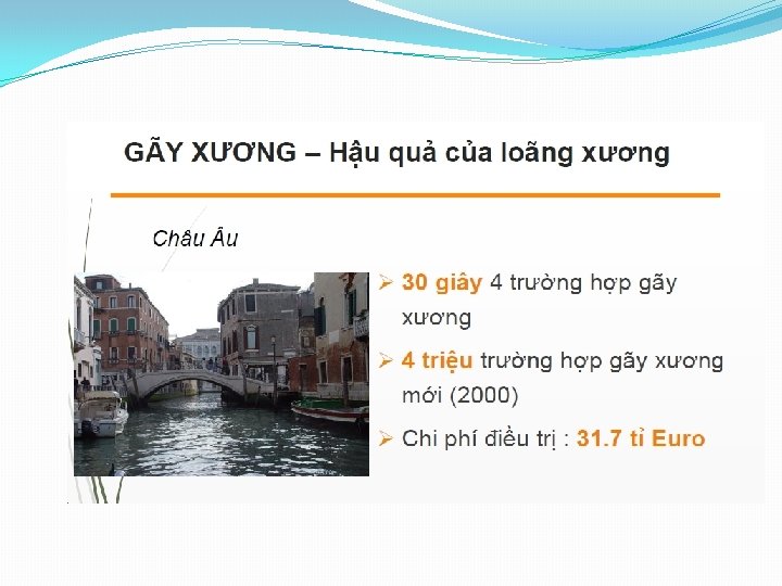 LOÃNG XƯƠNG : …BỆNH DIỄN TIẾN M THẦM v. Mất xương xảy ra từ từ mà không có triệu chứng v. Nhiều người không nhận ra bị loãng xương cho đến khi bị gãy xương v. The Silent disease