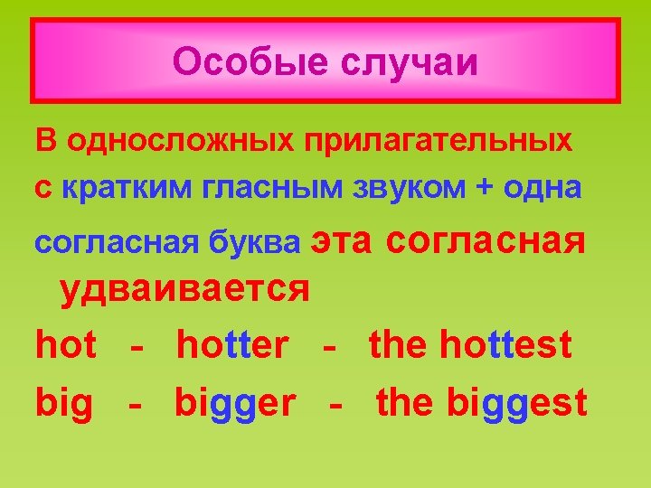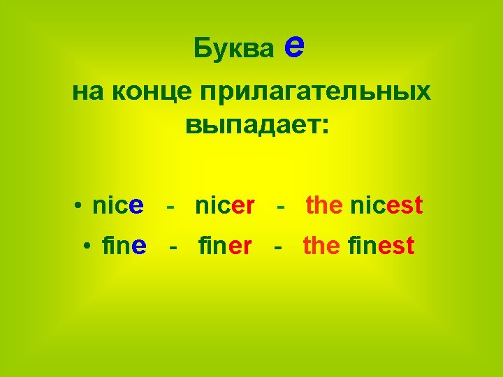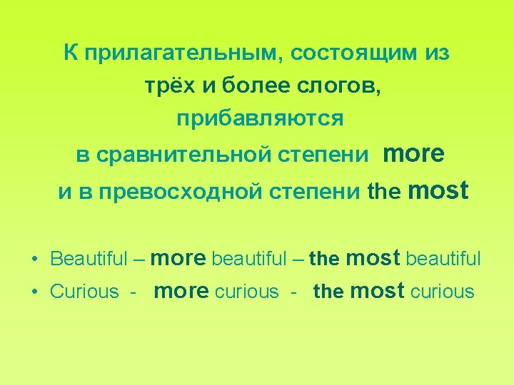 Правила образования степеней сравнения прилагательных • longer (the) longest • smarter (the) smartest • kinder (the) kindest • stronger (the) strongest • shorter (the) shortest