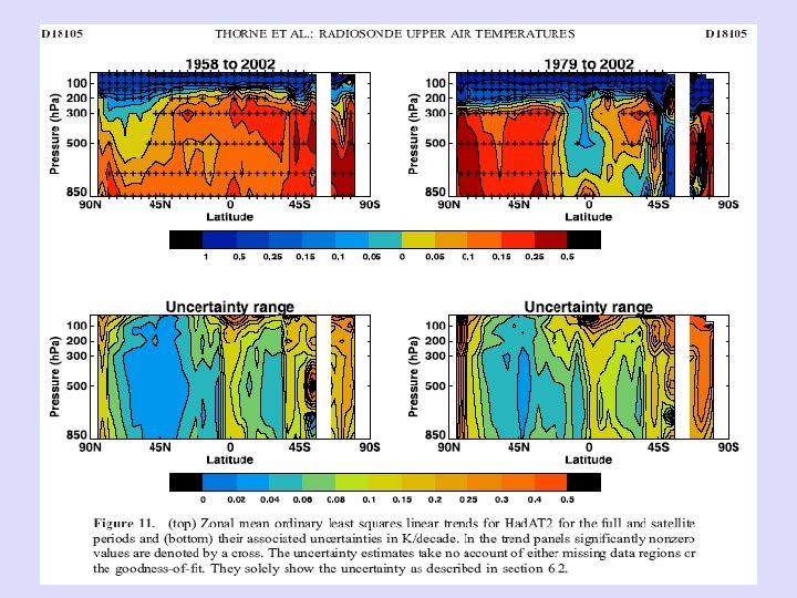 Radiosonde Datasets 1958 -present (Update of 3/2005 Reading Report) • Hadley Atmospheric Temperature (Had. AT) – – – UK Met Office (Thorne et al. JGR 2005) 9 levels, including 300, 200, 150, 100, 50, and 30 h. Pa Gridded product Adjustments based on Lanzante et al. (2003) and neighbor comparisons Available now at http: //hadobs. metoffice. com/hadat/ • Radiosonde Atmospheric Temperature Products for Assessing Climate (RATPAC) – NOAA (Free et al. JGR 2005) – 16 levels, including 300, 250, 200, 150, 100, 70, 50 and 30 h. Pa – Two datasets: • Large-scale (~30 deg bands) anomaly time series based on Lanzante et al. (2003) adjustments through 1979, then first-difference method and metadata • Station data with no adjustments post-1979, also 10 -deg zonal data – Available now at http: //www. ncdc. noaa. gov/oa/cab/ratpac/index. php