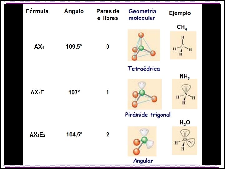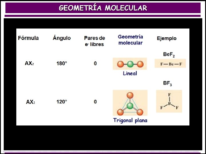 Geometría molecular Ordenamiento tridimensional de los átomos o iones en una molécula o red cristalina.