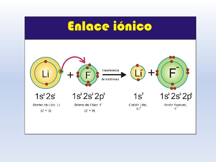 ENLACE IÓNICO: Transferencia de electrones Li F El litio le regala al flúor su electrón de valencia