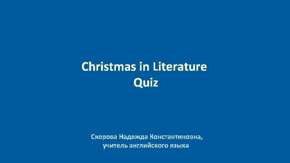 Anatoliy Valevskiy “A Christmas Story” Nikolay Gogol “Christmas Eve” Washington Irving “Old Chrismas” Clive Lewis “The Lion, the Witch and the Wardrobe”