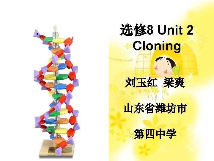 Third reading 1. True or False questions. ①Dolly the sheep was the first successful clone of a mammal. T ②Some countries like China didn’t stop human cloning research. F ③a cloned animal usually dies earlier than the original one. T ④Evil leaders can clone themselves to abtain their ambitions. F