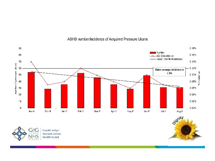 “Transforming Care” Dignity Outcomes Knowing How We Are Doing is critical…. . • St Woolos Hospital in Newport – 10 months without a Hospital Acquired Pressure Ulcer • County Hospital in Torfaen – 3 months without a Hospital Acquired Pressure Ulcer • Direct Patient Care Time has increased from 48% to 56% in Ebbw Ward, YAB • Ward B 3, RGH have had 365 days without a Medication mis-administration Incident • Ward C 4 West, RGH have had 235 days without a case of MRSA • Ward 4/1, NHH have had 71 days without a V&A Incident