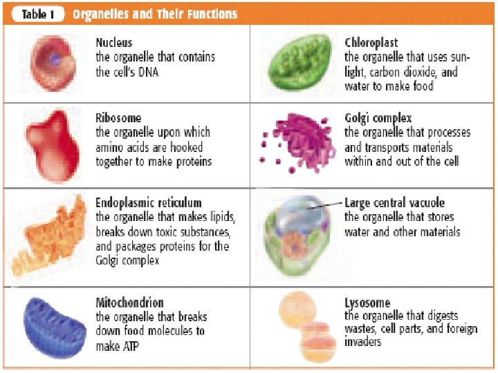 1. What are organelles? • Structures inside a cell that carry out specific functions.