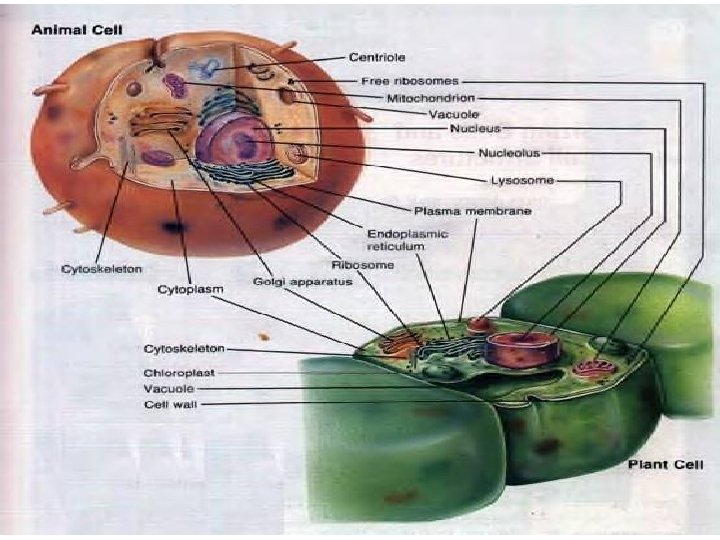 12. Compare plant and animal cells • Plant cells have 2 structures that animal cells do not: cell wall, which gives them a boxy shape chloroplasts, which allow them to capture sunlight energy.