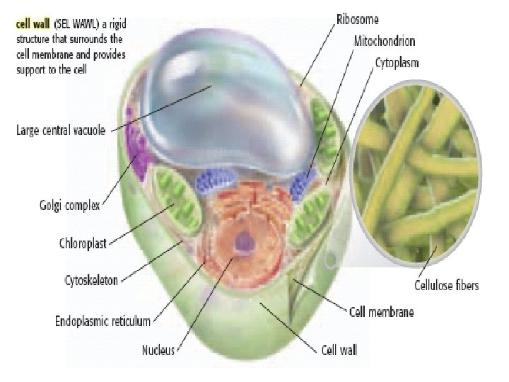 2. What is the cell wall? • Rigid layer of nonliving material that surrounds plant cells. • Function: protects and supports the cell • “City Wall”