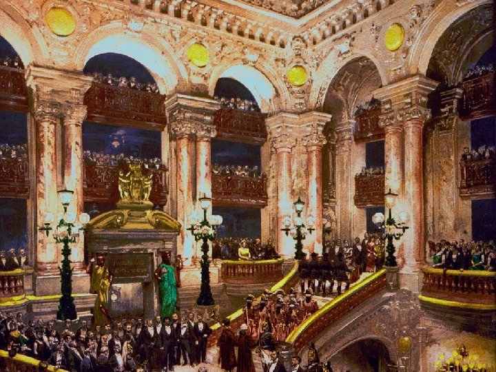 L’opéra Garnier Cliquez pour avancer L’opéra Garnier, ou palais Garnier, est un des édifices structurants du 9 e arrondissement de Paris et du paysage de la capitale française. L'édifice s'impose comme un monument particulièrement représentatif de l'architecture éclectique et du style historiciste de la seconde moitié du XIX e siècle. Sur une conception de l’architecte Charles Garnier retenue à la suite d’un concours, sa construction, décidée par Napoléon III dans le cadre des transformations de Paris menées par le préfet Haussmann et interrompue par la guerre de 1870, fut reprise au début de la Troisième République, après la destruction par incendie de l’opéra Le Peletier en 1873. Le bâtiment est inauguré le 5 janvier 1875 par Mac Mahon. Cet opéra a longtemps été appelé « opéra de Paris » , mais depuis l'ouverture de l'opéra Bastille en 1989, on le désigne par le seul nom de son architecte : « opéra Garnier » ou « palais Garnier » . Les deux opéras sont aujourd'hui regroupés au sein de l'établissement public à caractère industriel et commercial « Opéra national de Paris » . L'opéra Garnier fait l’objet d’un classement au titre des monuments historiques depuis le 16 octobre 1923. Façades, sculptures et décors extérieurs Façade principale Sud La grande façade, donnant sur la place de l'Opéra et située au carrefour de nombreuses percées haussmanniennes sert de toile de fond à la perspective de l'avenue qui sera ouverte un peu plus tard. Elle constitue, en quelque sorte, le manifeste de l'artiste. Son tracé et ses proportions savants comme sa riche polychromie expriment, en une synthèse habile, du l'essence l'architecture éclectique. Photos personnelles +Net Texte Net même de Créations Delia Florea Garnier a choisi lui-même les quatorze peintres, les mosaïstes ainsi que les soixante-treize sculpteurs, dont le célèbre Jean-Baptiste Carpeaux, devant participer à son ornementation.