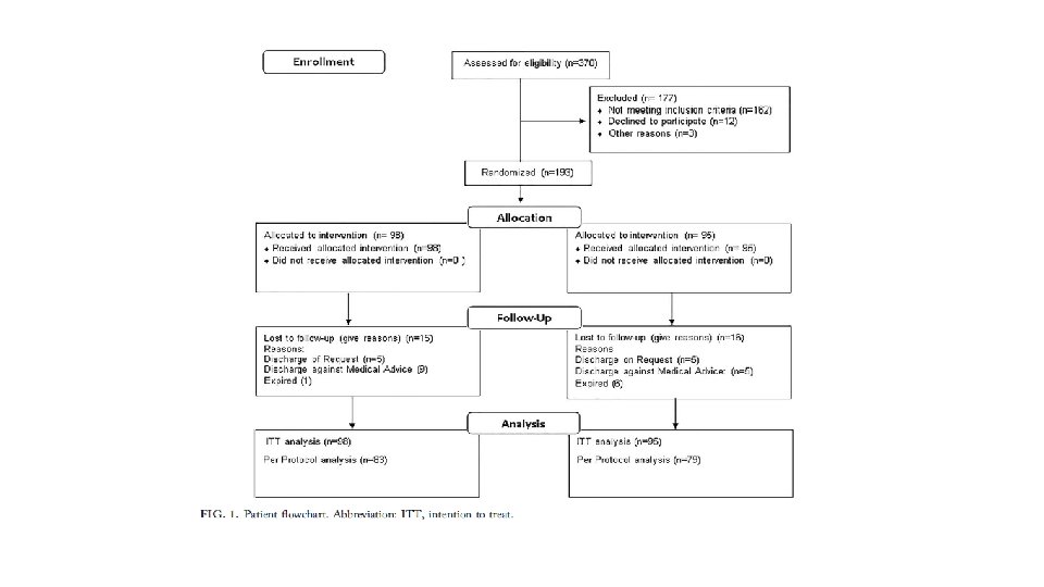 Patients • Study type: Prospective, double-blind, randomized, controlled trial • Enrollment of patients from 12/2013 to 11/2016 in two tertiary care centers in India (in Ludhiana and New Delhi) • Inclusion criteria: patients with cirrhosis aged 18 -75 years with bouts of OHE grade 2 -4, with or without precipitating factors • Exclusion criteria: terminally ill patients, advanced cardiac or pulmonary disease, presence of underlying chronic renal failure, neurodegenerative disease (incl. head injury and drug intoxication), psychiatric illness, use of sedatives or antidepressants, pregnancy, HCC, acute-on-chronic liver failure • Screening of 370 patients, after exclusion 193 patients (52, 16%)