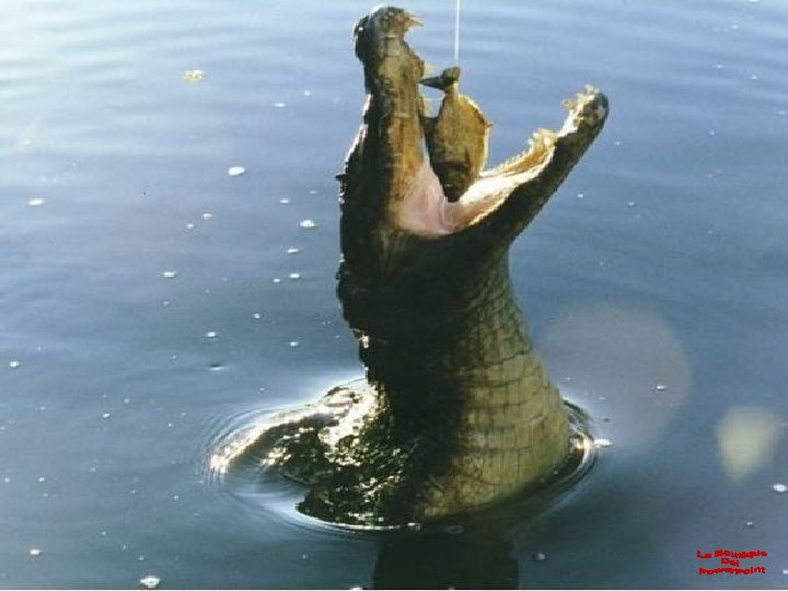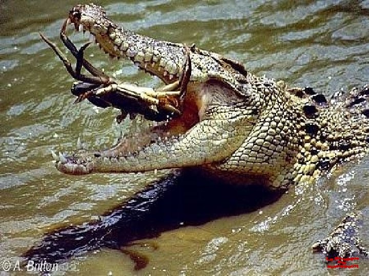 Los cocodrilos jóvenes se alimentan de cangrejos, insectos y ranas. Los más grandes cazan peces, se alimentan de animales muertos o permanecen en espera durante horas, listos para engullir presas como mamíferos y aves acuáticas. Aferran a la presa con mandíbulas poderosas y dientes filosos, arrastrándola debajo del agua hasta ahogarla. Los cocodrilos no pueden masticar, de modo que cortan a la presa, sacudiéndola y despedazándola con sus dientes. Nuevos dientes crecen para reemplazar los que se rompen o se pierden. Su mordedura es la más poderosa de todo el Reino Animal, de unos 1. 800 kilos de fuerza.