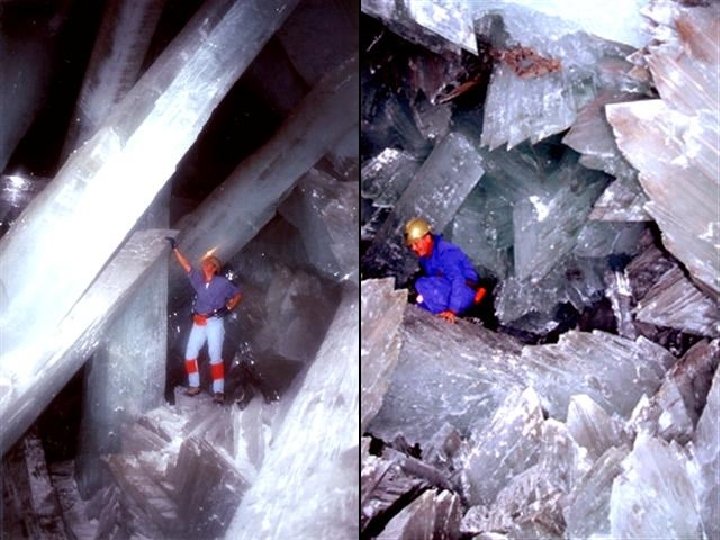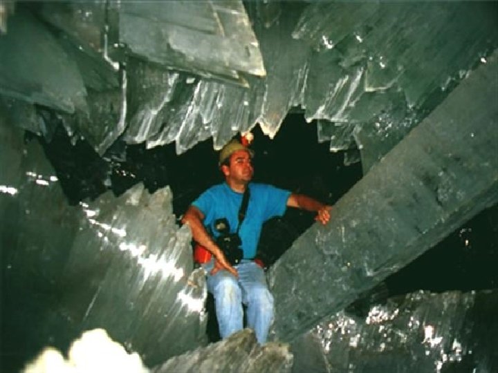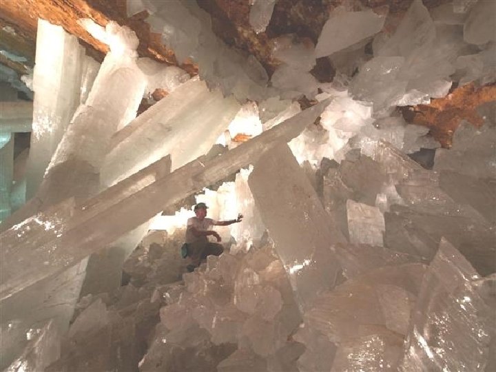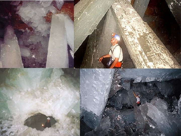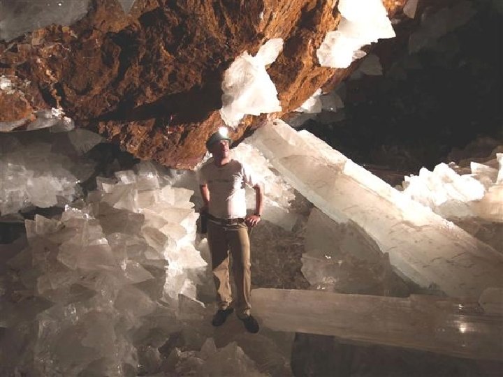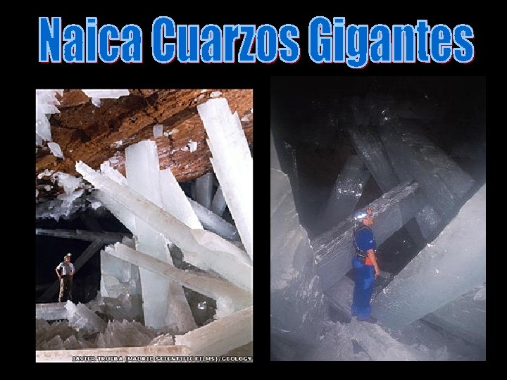 Naica Cueva de los Cuarzos Gigantes Un bosque de cuarzos, el mayor del planeta. Un mundo irreal, mas allá de la imaginacion, mas alla de un sueño. . Una cueva con temperaturas de 60° C y 100% de humedad; un lugar infernal donde el humano solo puede sobrevivir por unos minutos. . Aun sin explorarse por completo. . FIN Click para salir