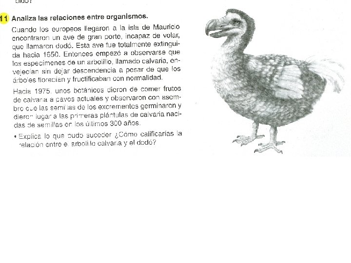 EL NUMERO DE INDIVIDUOS El efecto más visible de la competencia intraespecífica es la regulación del número de individuos de una población. Si, en un determinado ambiente, el número de individuos supera la capacidad del medio, se produce una muerte masiva, hasta que, finalmente, se alcanza un número de individuos más o menos estable a lo largo del tiempo. La gráfica de la derecha muestra la densidad final de truchas que presenta un río después de varias repoblaciones. En el eje horizontal figura la densidad inicial de peces des pués de cada repoblación, y el vertical, la densidad final de truchas al cabo de un año. . ¿A partir de qué densidad inicial de truchas la densidad final permanece constante? ¿Cómo lo explicarías? 1 ¿Qué condiciones del medio na ural pueden favorecer la apari ción de competencia? 2 Explica la diferencia existente entre supervivencia y fecundidad. ¿Cuál de los dos aspectos crees que tiene mayor importancia? " 3 Define los diferentes tipos de Asociaciones Interespecíficas