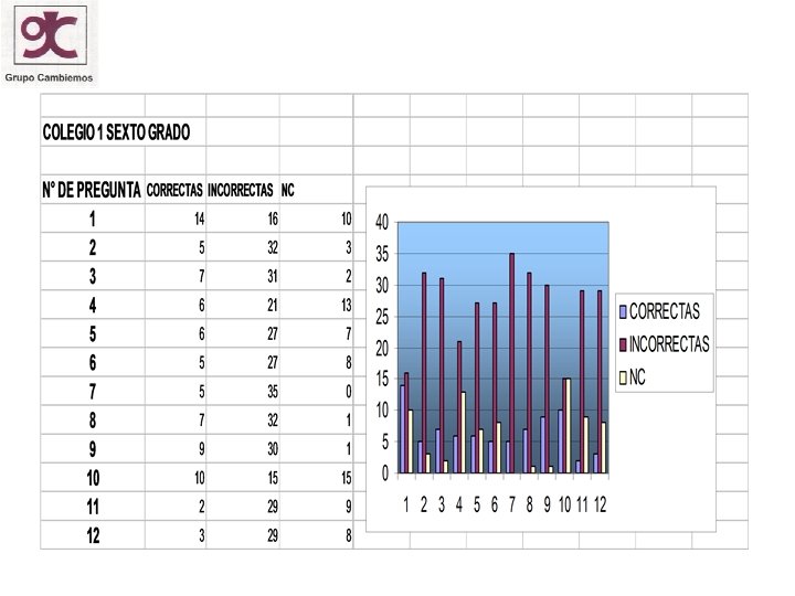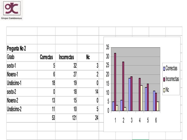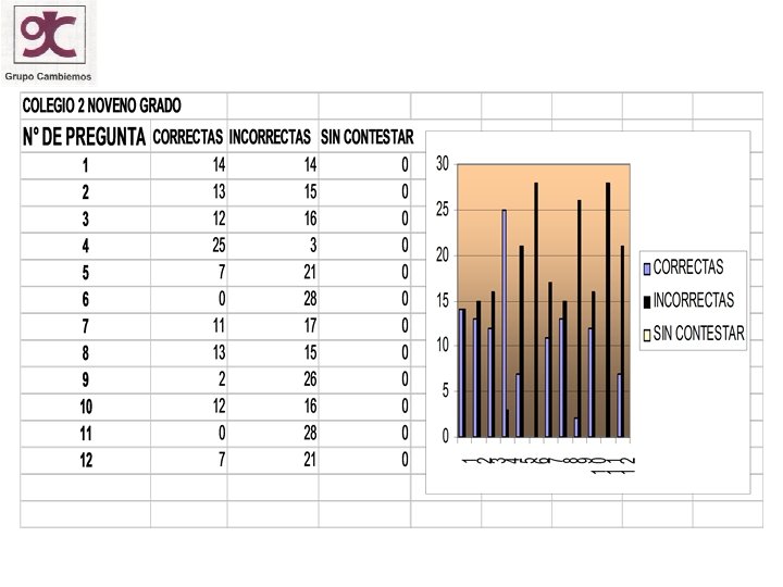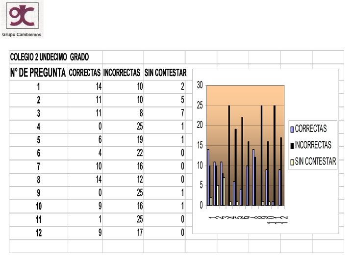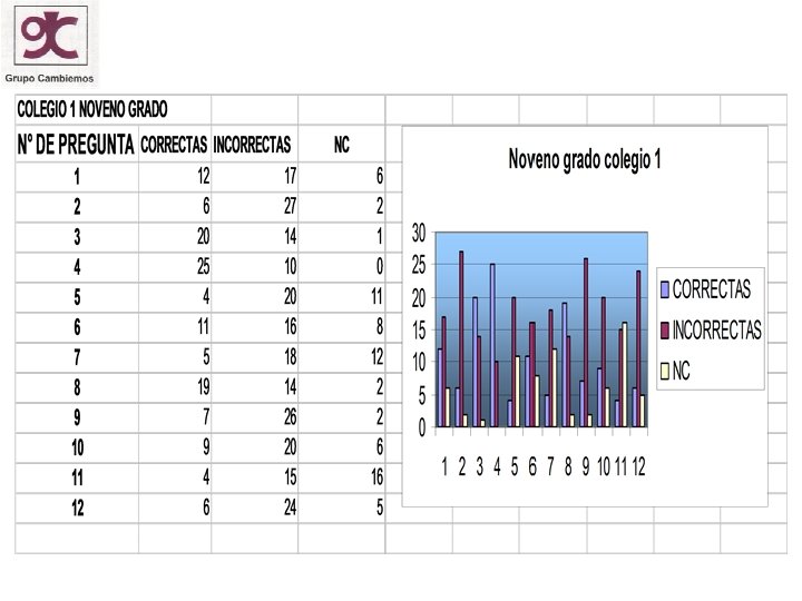 CONCLUSIONES • Los niños encuestados nos muestran que basados en la percepción poseen conceptos errados • Se observa que los alumnos de grado once de las dos instituciones en la respuesta de la pregunta No. 2 los resultados entre lo correcto e incorrecto son muy similares
