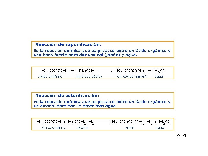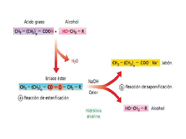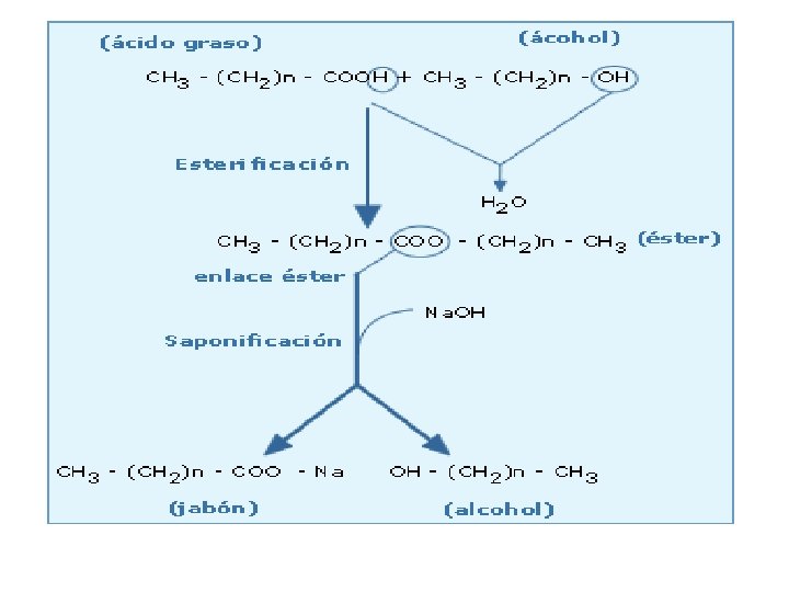 SAPONIFICACIÓN R-COOH + OHNa ----> R-C-ONa + H 2 O • ac. graso + base ----> jabón + agua
