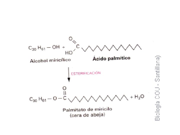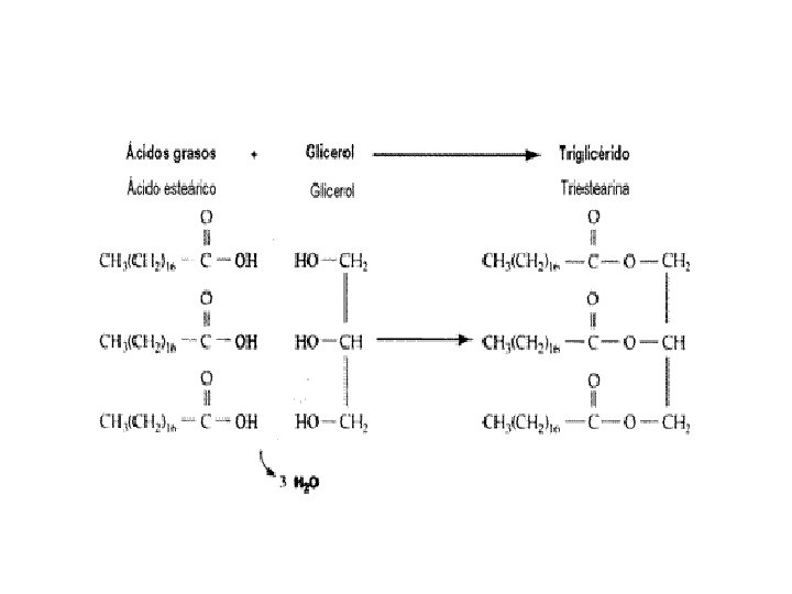 • SON ÉSTERES, SU HIDRÓLISIS PRODUCE UN ALCOHOL Y UN ACIDO CARBOXÍLICO. • LA HIDROLÍSIS DE UN ÉSTER SE CONOCE COMO SAPONIFICACIÓN Y EN LOS SERES VIVOS SE REALIZA CON LA INTERVENCIÓN DE LA LIPASAS.