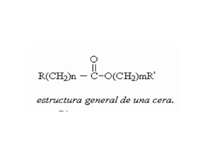 CÉRIDOS O CERAS. • SON LOS ESTERES FORMADOS POR UN ALCOHOL MONOVALENTE DE CADENA LARGA Y UNA MOLÉCULA DE ÁCIDO GRASO. • ORIGINAN LAMINAS IMPERMEABLES QUE PROTEGEN LA EPIDERMIS Y FORMACIONES DÉRMICAS DE LOS ANIMALES COMO PELOS, PLUMAS Y ESCAMAS Y TAMBIEN EN VEGETALES COMO HOJAS, TALLOS Y FRUTOS.