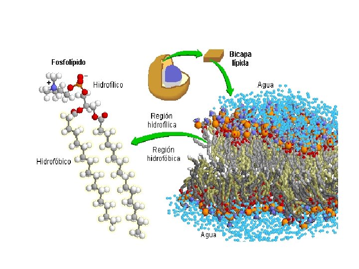 • ZONA HIDRÓFILA: ES EL GRUPO CARBOXILO IONIZADO. GRACIAS A SU CARGA ELECTRICA, ESTABLECE ATRACCIONES DE TIPO ELÉCTRICO CON LAS MOLÉCULAS DE AGUA Y CON OTRAS MOLÉCULAS POLARES.