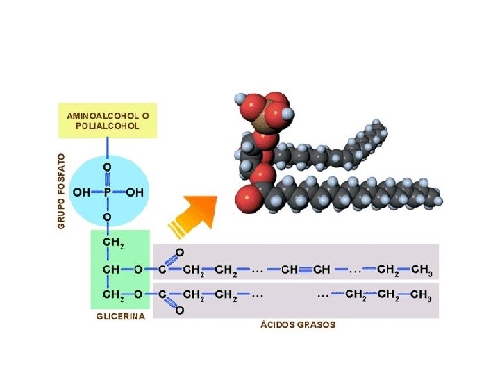 FOSFOGLICÉRIDOS. FOSFOLÍPIDOS. • FORMADOS POR DOS ÁCIDOS GRASOS, UNA GLICERINA, UN ÁCIDO FOSFÓRICO Y UN ALCOHOL QUE TIENE UN GRUPO AMINO. • EL FOSFÓRICO Y EL GRUPO AMINO SE IONIZAN Y FORMAN EL GRUPO POLAR • SON DIACILGLICÉRIDOS.