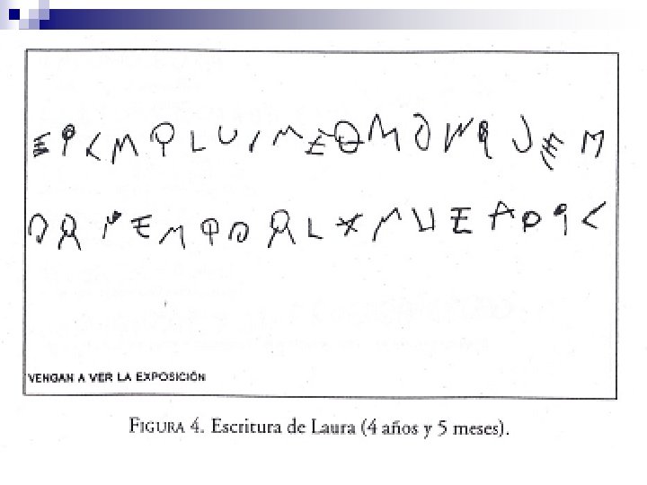 3. Etapa diferenciada n n n La hipótesis central de este nivel es que para poder leer cosas diferentes debe haber formas diferentes. Los niños comienzan a establecer relación entre los aspectos sonoros y los aspectos gráficos de la escritura. Las grafías ofrecen mayor variedad y comienzan a parecerse a las letras convencionales (similletras o pseudoletras)