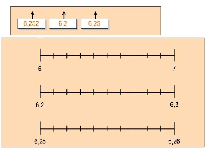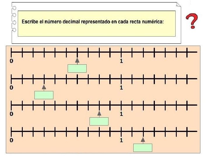 Por ejemplo: En este caso en la recta numérica se ha dividido la unidad en 100 partes iguales y se han ubicado los centésimos. Entre el 0 y el 0, 1 se ubican: