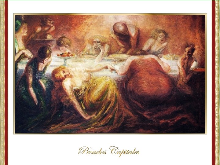 Es el deseo desordenado por el placer conectado con la comida o la bebida. También está ligado al consumo de drogas, tabaco, etc. Este deseo puede ser pecaminoso de varias formas: . Comer o beber en exceso más de lo que el cuerpo necesita. . Fomentar el gusto por cierta clase de comida a sabiendas que hacen daño para la salud. . Consentir el apetito fruitivo por comidas o bebidas lujosas y excepcionales. . Consumir bebidas alcohólicas hasta el punto de perder control total de la razón. . Consumo de drogas de cualquier clase y en cualquier cantidad. La virtud a cultivar contra la gula es “La Templanza”.