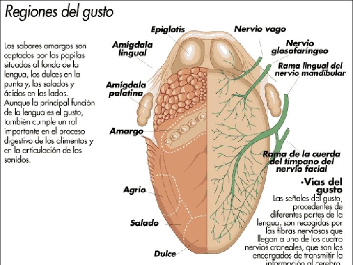Los sabores que percibimos en cada parte de la lengua Amargo Ácido Salado Dulce