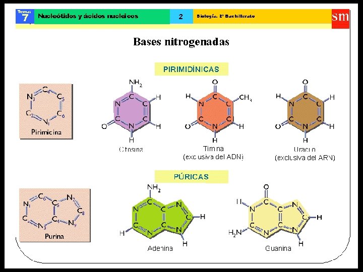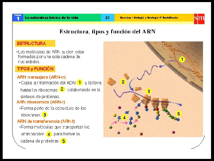 ESTRUCTURA DEL ARN • CONTIENE LA RIBOSA (PENTOSA) • LAS BASES NITROGENADAS QUE LA FORMAN SON LA: ADENINA CITOCINA GUANINA URACILO