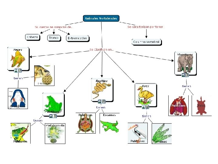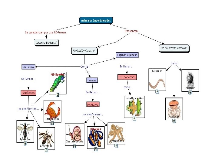 ANIMALES • Son organismos pluricelulares, eucariotas y de alimentación heterótrofa. • Según sus estructuras y el modo con los que llevan a cabo sus funciones se distinguen dos grupos: Los vertebrados Los invertebrados