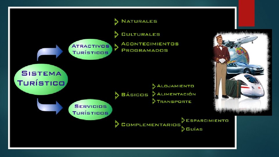 TIPOS DE SERVICIOS TURISTICOS ALOJAMIENTO ATRACCIONES RESTAURANTES TRANSPORTE AGENCIAS DE VIAJE
