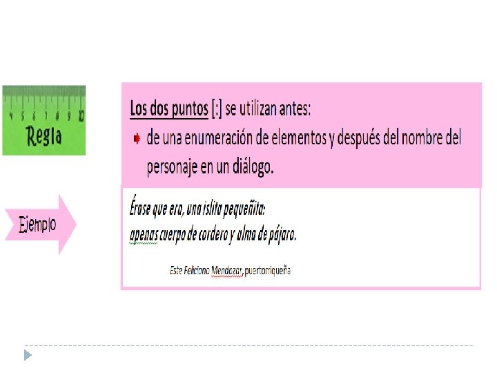 Ejercicio: � Busque una pareja. � A cada pareja se le entregará unas franjas con una oración desorganizada. � Su trabajo será organizar las tarjetas en una oración que tenga sentido. � Debe recordar el uso de las letras mayúsculas y el punto final. � El resto del grupo observará y hará recomendaciones.