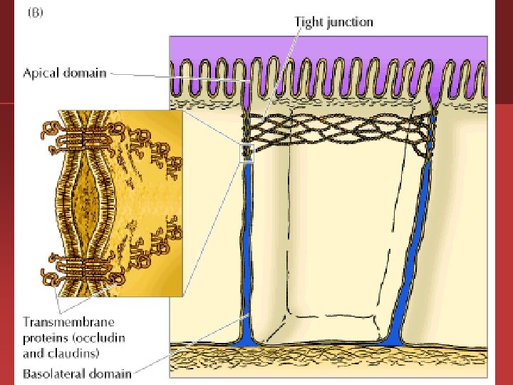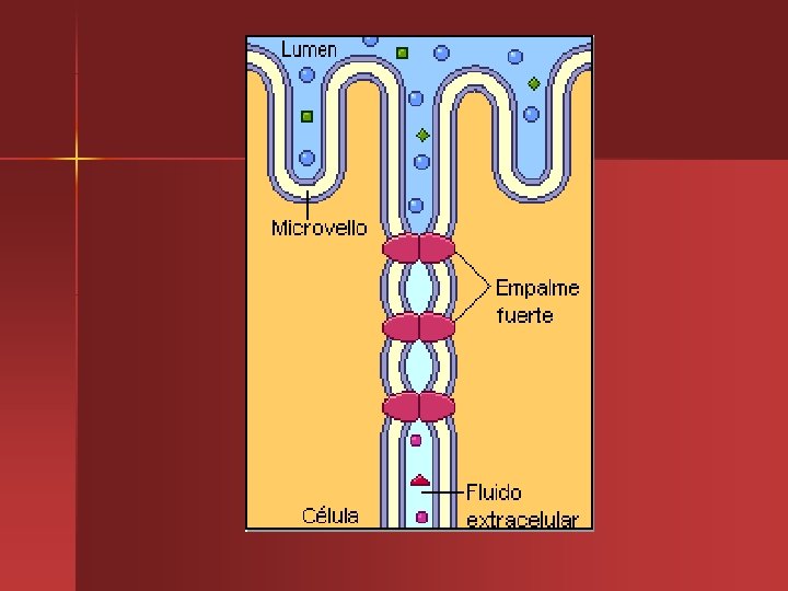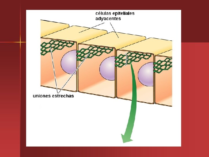UNIÓN ESTRECHA U OCLUSIVA Se encuentra separando los líquidos extracelulares que bañan las regiones apicales y basales de las células (con el objeto de que cumplan sus respectivas funciones) y forman barreras que tornan impermeables determinadas cavidades (como la luz del intestino).