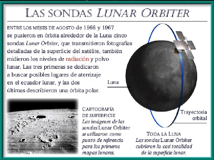 APOLLO 8 El siguiente paso era llegar a la Luna. Para ello, en diciembre de 1968 se lanzó el APOLLO 8, en el cual viajaban los astronautas Borman, Lovell y Anders. Estos se colocaron en órbita terrestre y se les dio desde el control de tierra una orden no dada hasta ese momento: iniciar la inyección trans-lunar (ITL). El Apollo 8 fue el primer vuelo tripulado en salir de la órbita terrestre. Fotografiaron la Tierra y la Luna y comprobaron los sistemas, transmitiendo todo por tv. Realizó todo el viaje hasta la Luna, la rodearon y regresaron a la Tierra el día 27 de diciembre. El vuelo del Apollo 8 puso de manifiesto que la conquista de la Luna se hallaba muy cerca