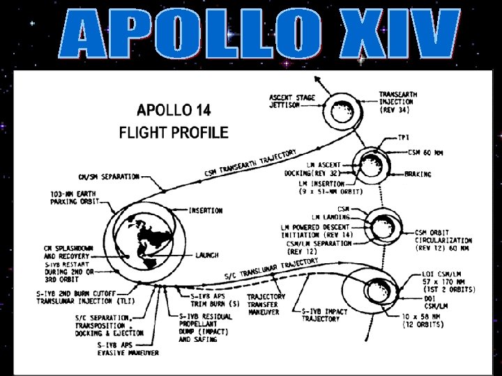 APOLLO 14 Después de haber sido el primer astronauta norteamericano en el espacio tras su vuelo en el Mercury, Alan B. Shepard no había vuelto a salir al espacio por diversos problemas en su oído interno. Pero ahora ya estaba preparado para una nueva misión. Junto con Mitchel y Roosa fue lanzado para realizar el tercer alunizaje que no pudo realizar el Apolo 13. A las tres horas y media del lanzamiento sobrevino la primera dificultad. El mecanismo de anclaje del CM con el LM no funcionó hasta el sexto intento. Durante el descenso del Módulo Lunar se produjeron numerosos incidentes, pero todos ellos fueron resueltos. Una vez en la Luna, la exploración de un cráter tuvo que suspenderse debido al aumento excesivo del ritmo cardiaco de los astronautas. Alunizaron en la zona de Fra Mauro. Estuvieron 9 horas y 25 minutos explorando esa zona de la superficie lunar en dos salidas del módulo. Recogieron unos 43 kg. de muestras geológicas e instalaron instrumentos científicos. Permanecieron 33, 5 horas en la superficie y 67 horas en órbita lunar, completando 34 órbitas. Regresó a la Tierra el día 9 de febrero.