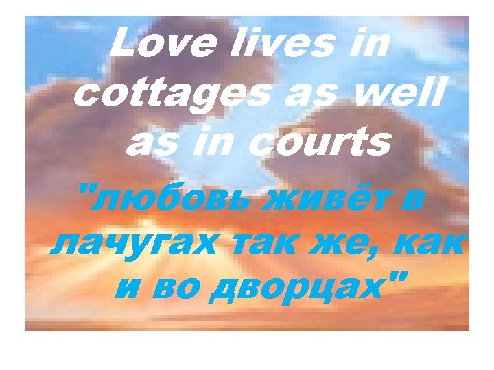 Love is blind Любовь слепа Любовь зла полюбишь и козла Jill: I don't understand why Joanna likes Tom. He's inconsiderate, he's vain, and he isn't even goodlooking. Jane: Love is blind.