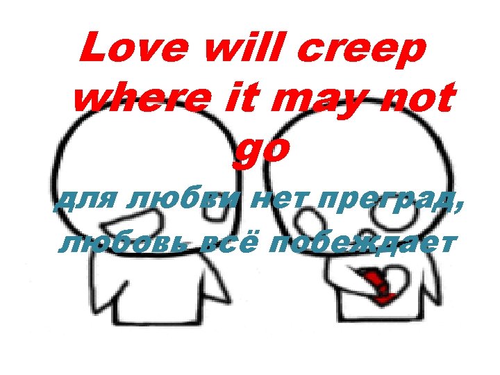 Love begets love Child: I hate Tammy! She's always mean to me. Father: If you're nicer to her, maybe she'll change her ways. Love begets love. Love makes the world go around Come on, guys, stop fighting with each other all the time. Love makes the world go round. Хочешь быть любимым, люби сам